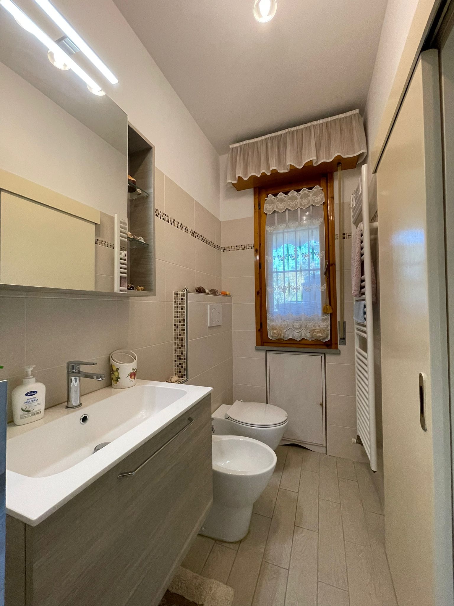 L’appartamento è dotato di riscaldamento autonomo e gode di un’esposizione nord-est, che garantisce una buona luminosità nelle ore del mattino e ambienti freschi durante l’estate.