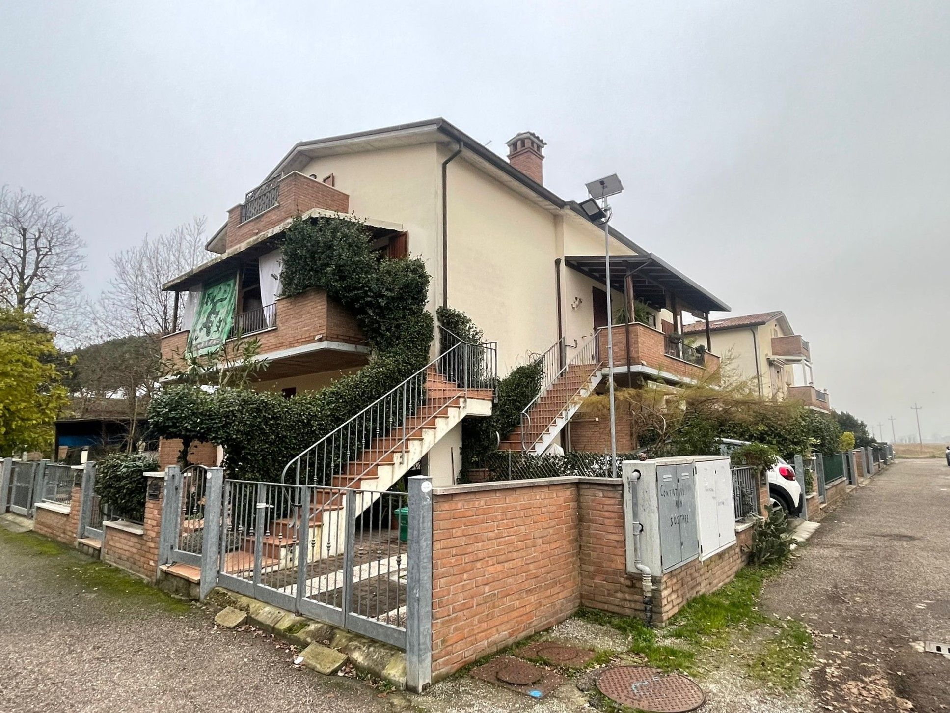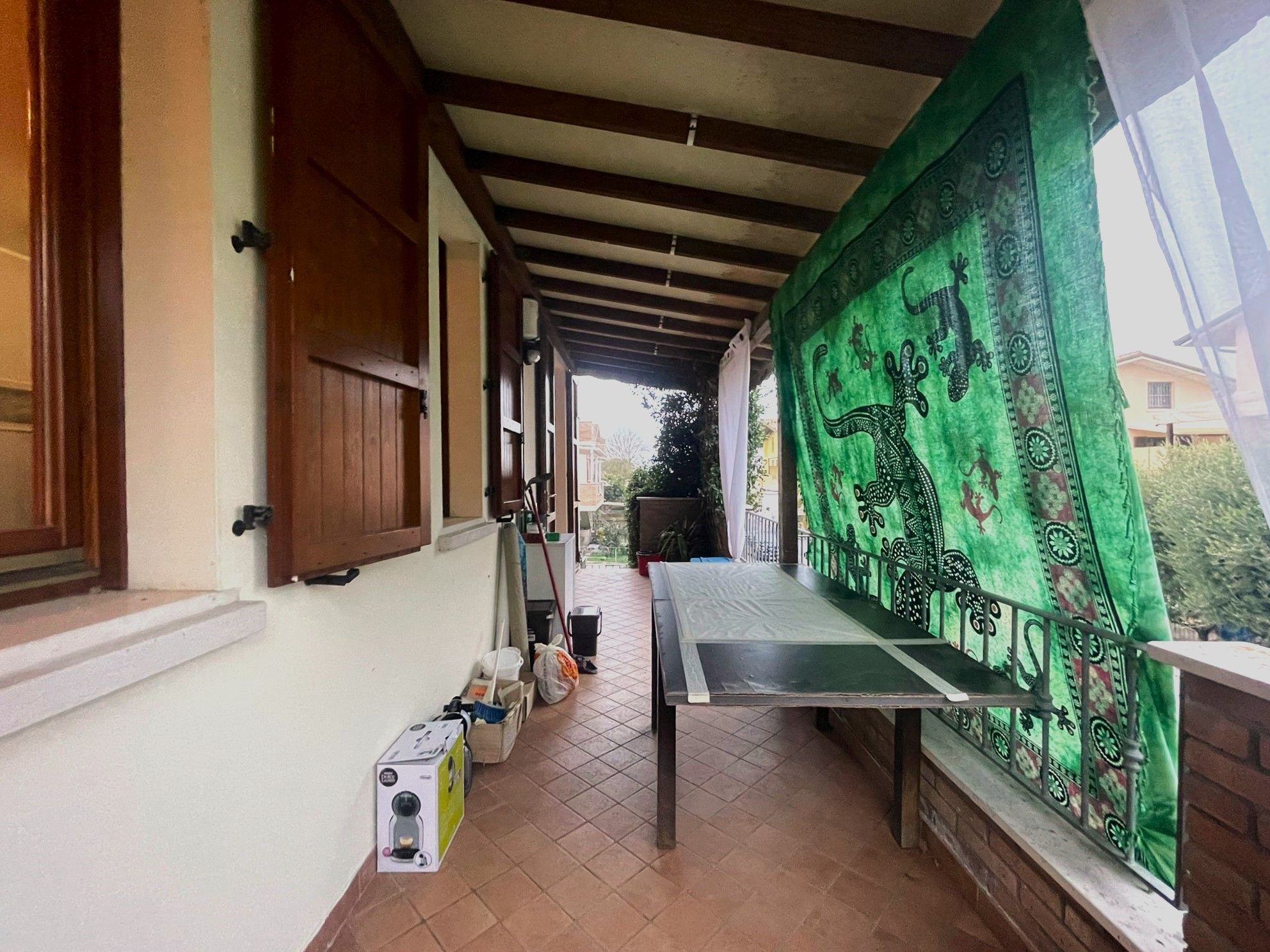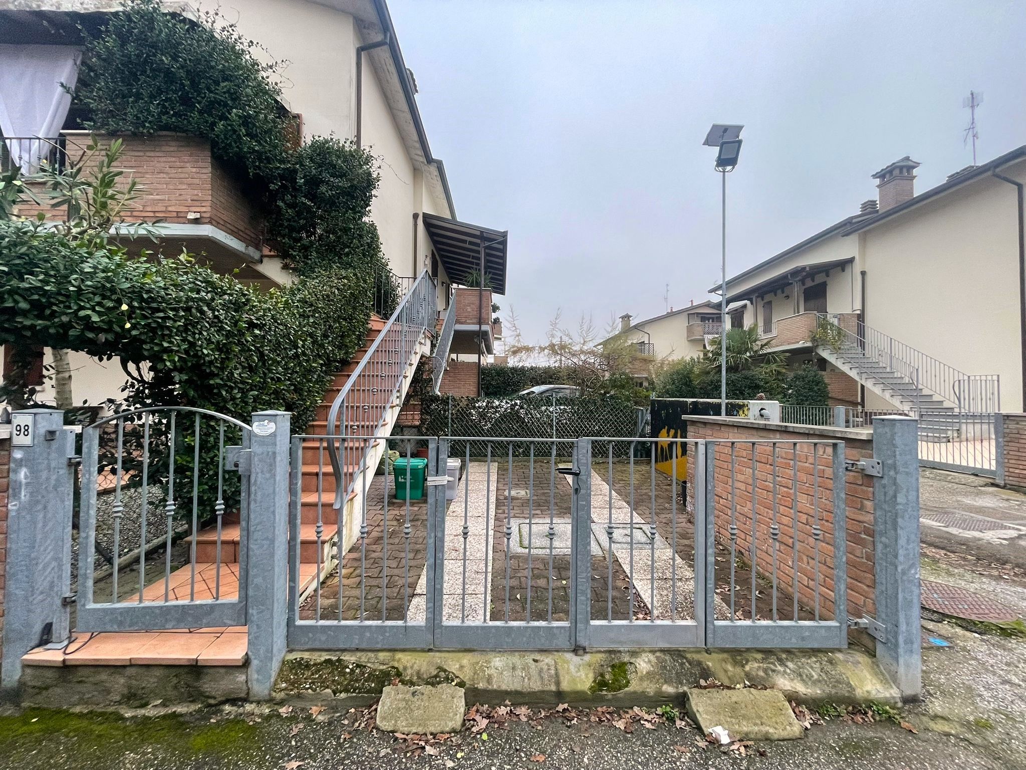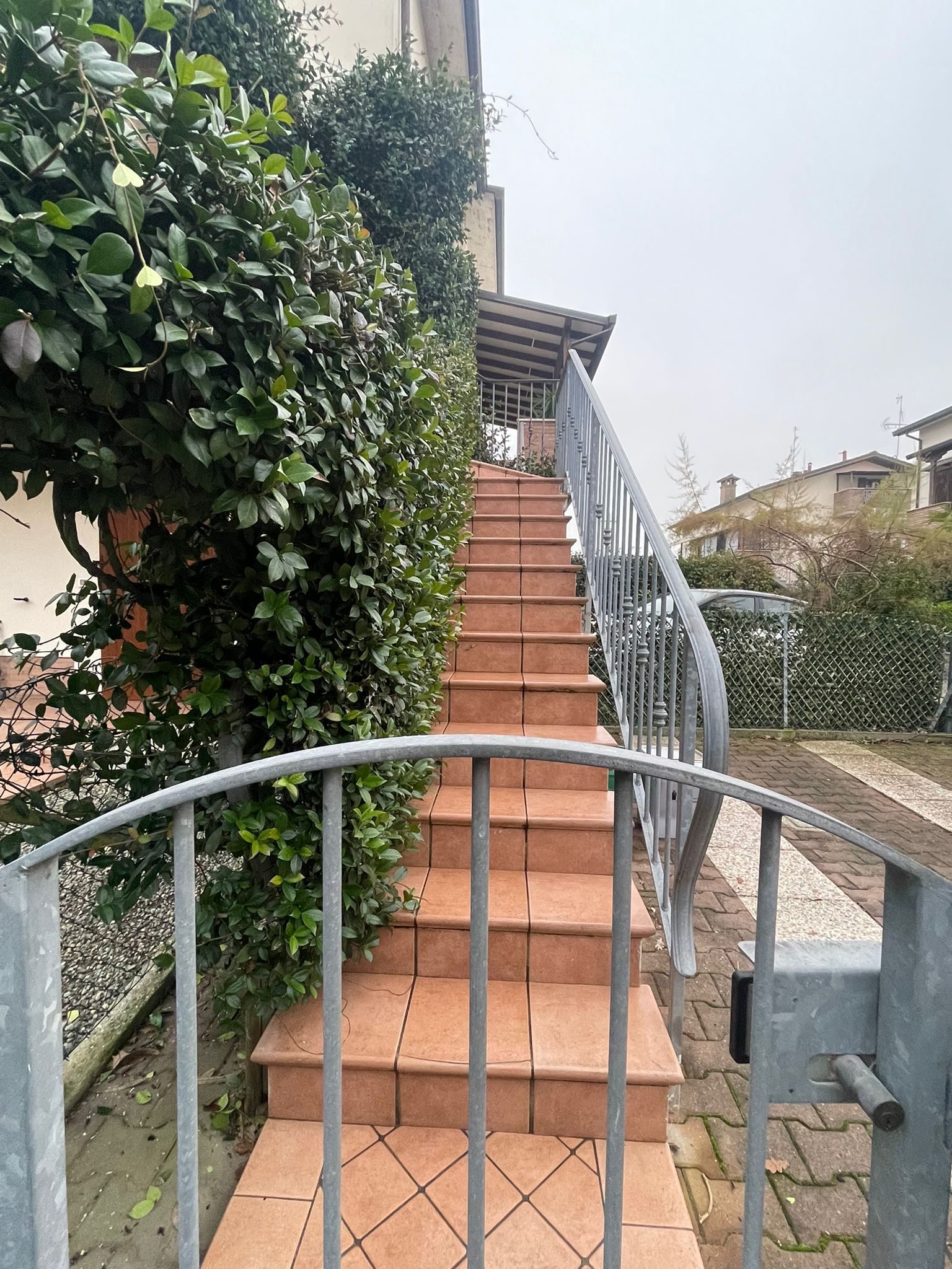 Al piano terra è presente un posto auto privato all’interno del cortile, da cui si accede tramite scala privata all’abitazione. L’ingresso avviene attraverso un ampio terrazzo, perfetto per momenti di relax all’aperto. All’interno troviamo una luminosa zona giorno con soggiorno-pranzo e angolo cottura, una spaziosa camera da letto matrimoniale e un grande bagno finestrato dotato di box doccia.