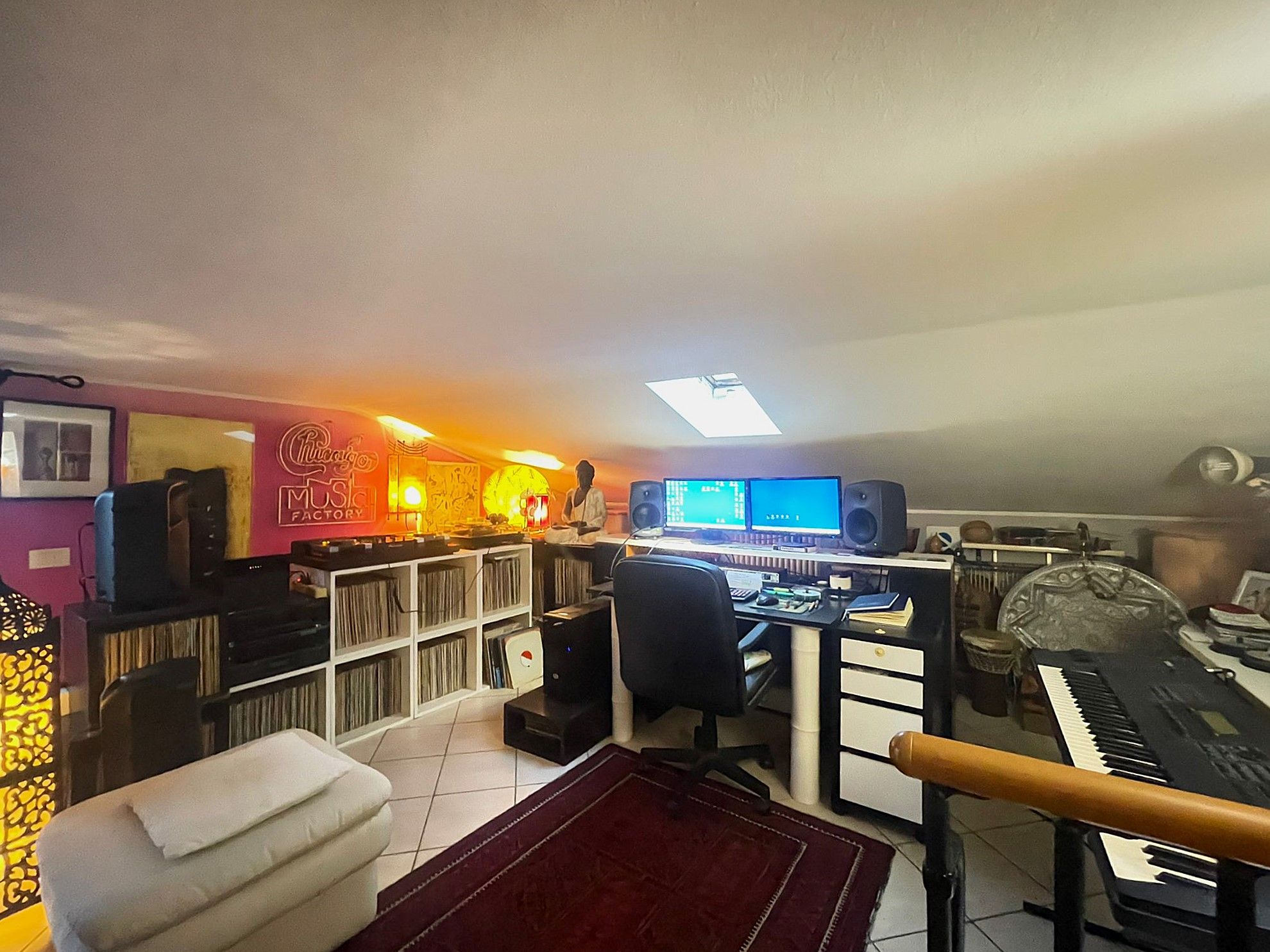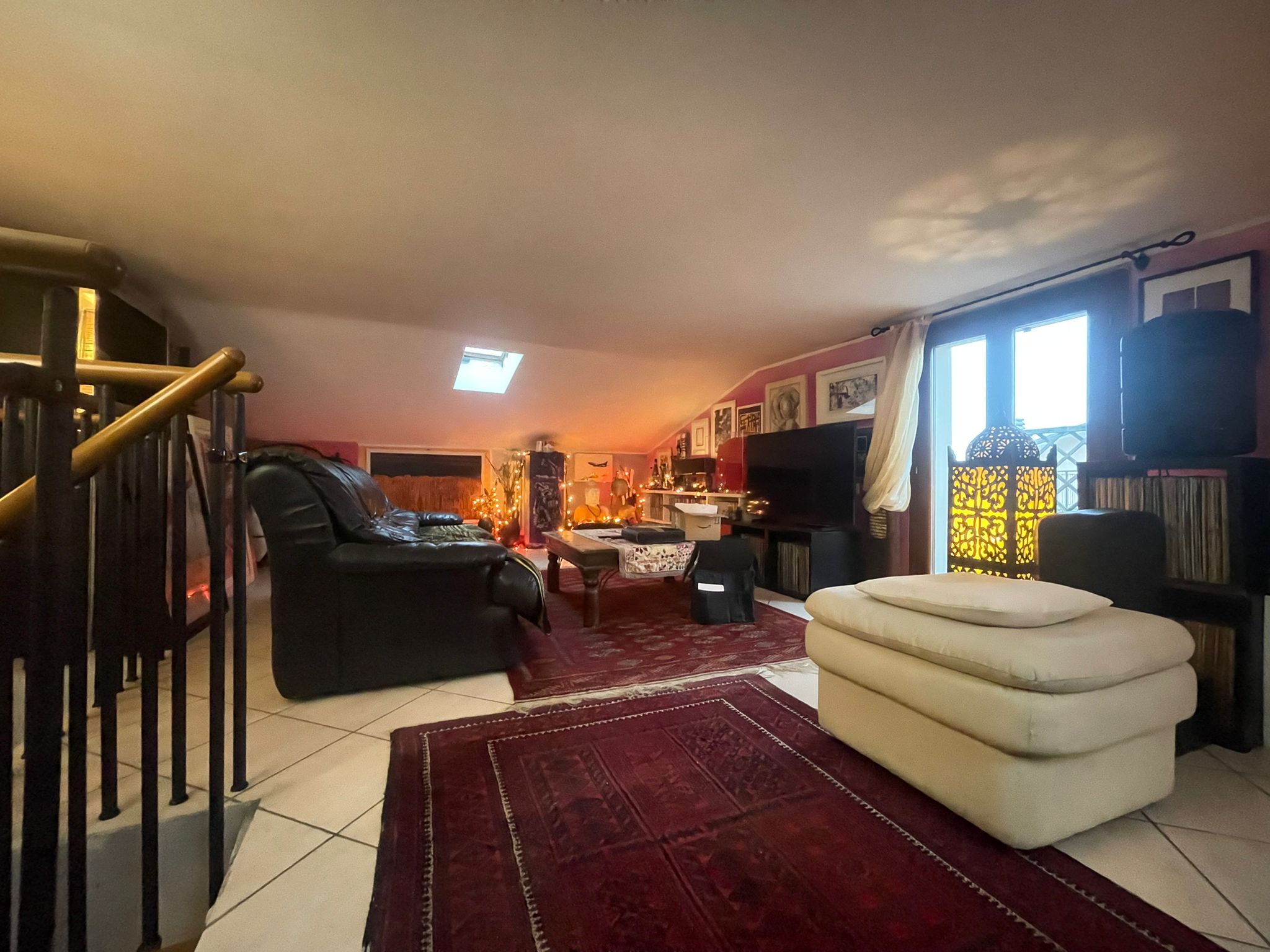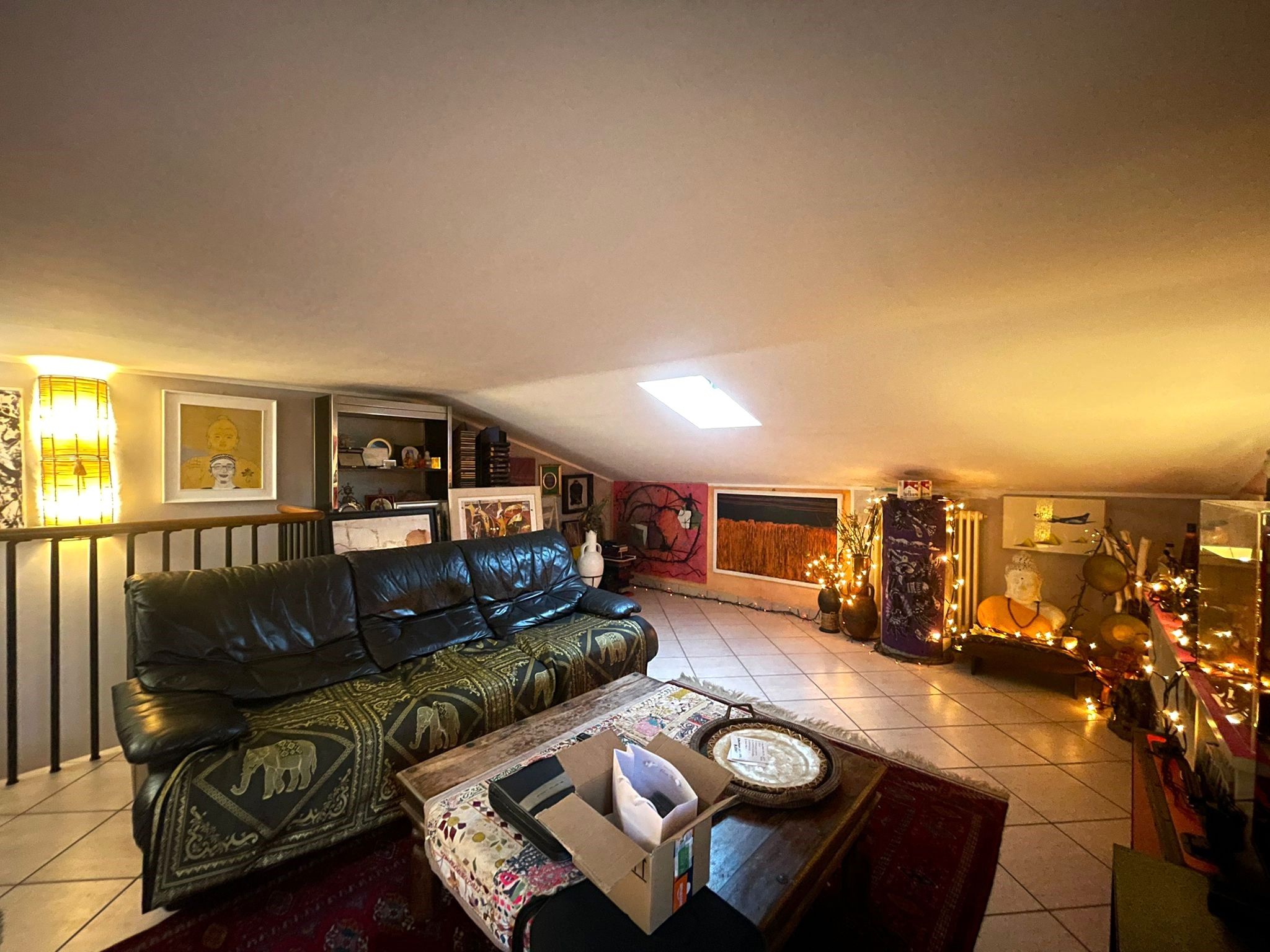 Salendo al livello superiore si accede a una grande mansarda con balconcino, attualmente adibita a studio ma facilmente trasformabile in una seconda camera matrimoniale, grazie alle ampie metrature e alla buona luminosità.